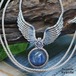 白銀に輝く魔石『カヤナイト/カイヤナイト』天使の羽根/羽翼マクラメ編ネックレス