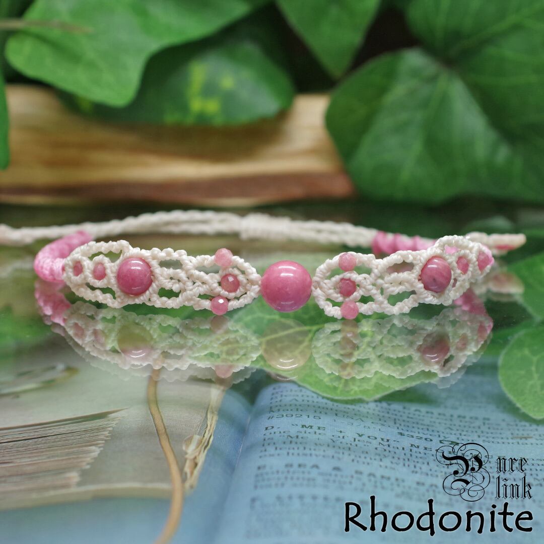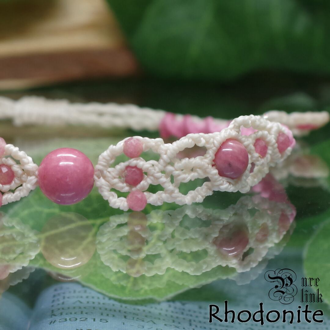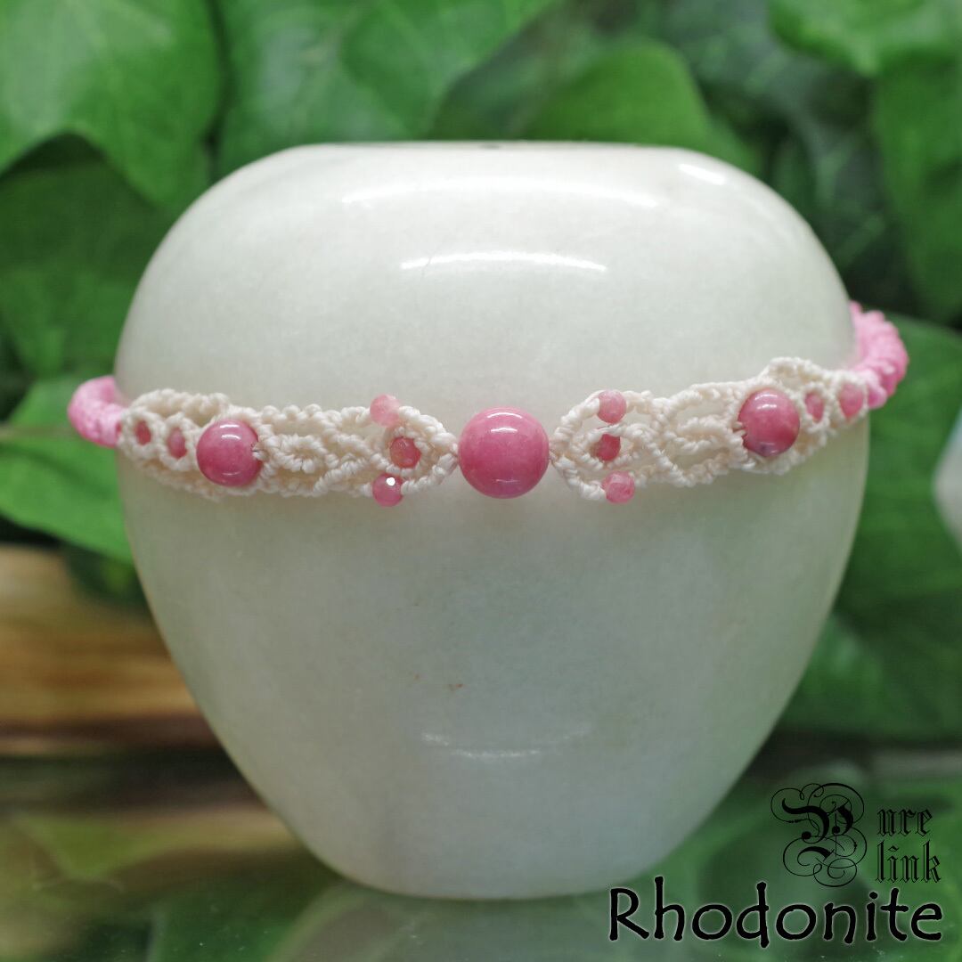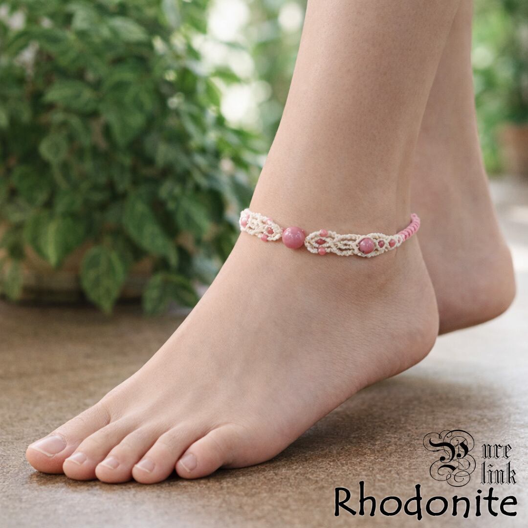 女性の為の薔薇の魔石『ロードナイト』マクラメ編みアンクレット