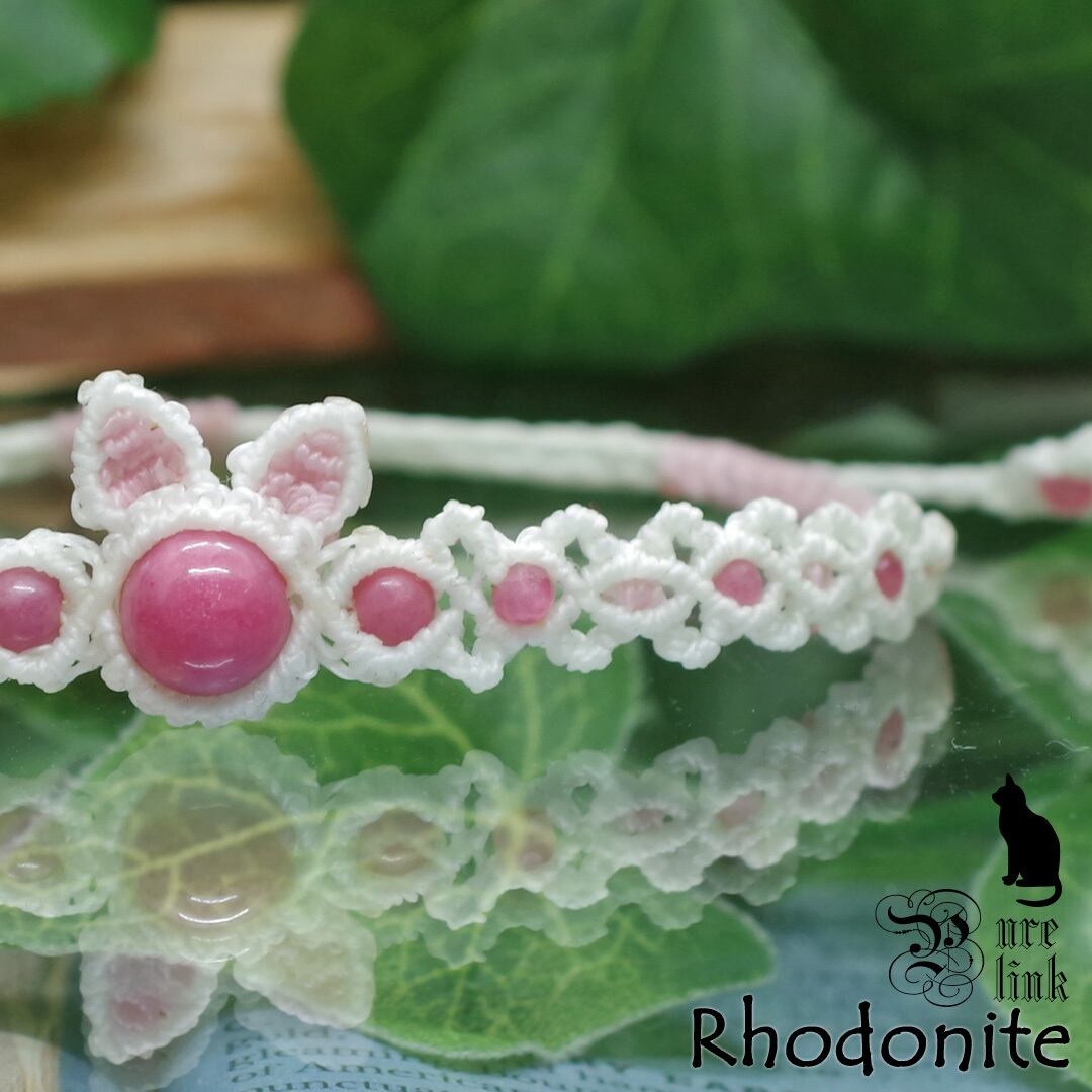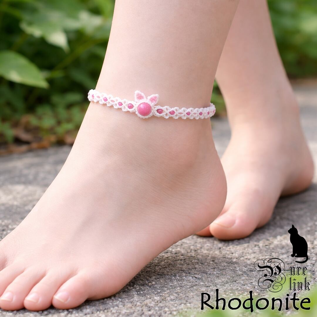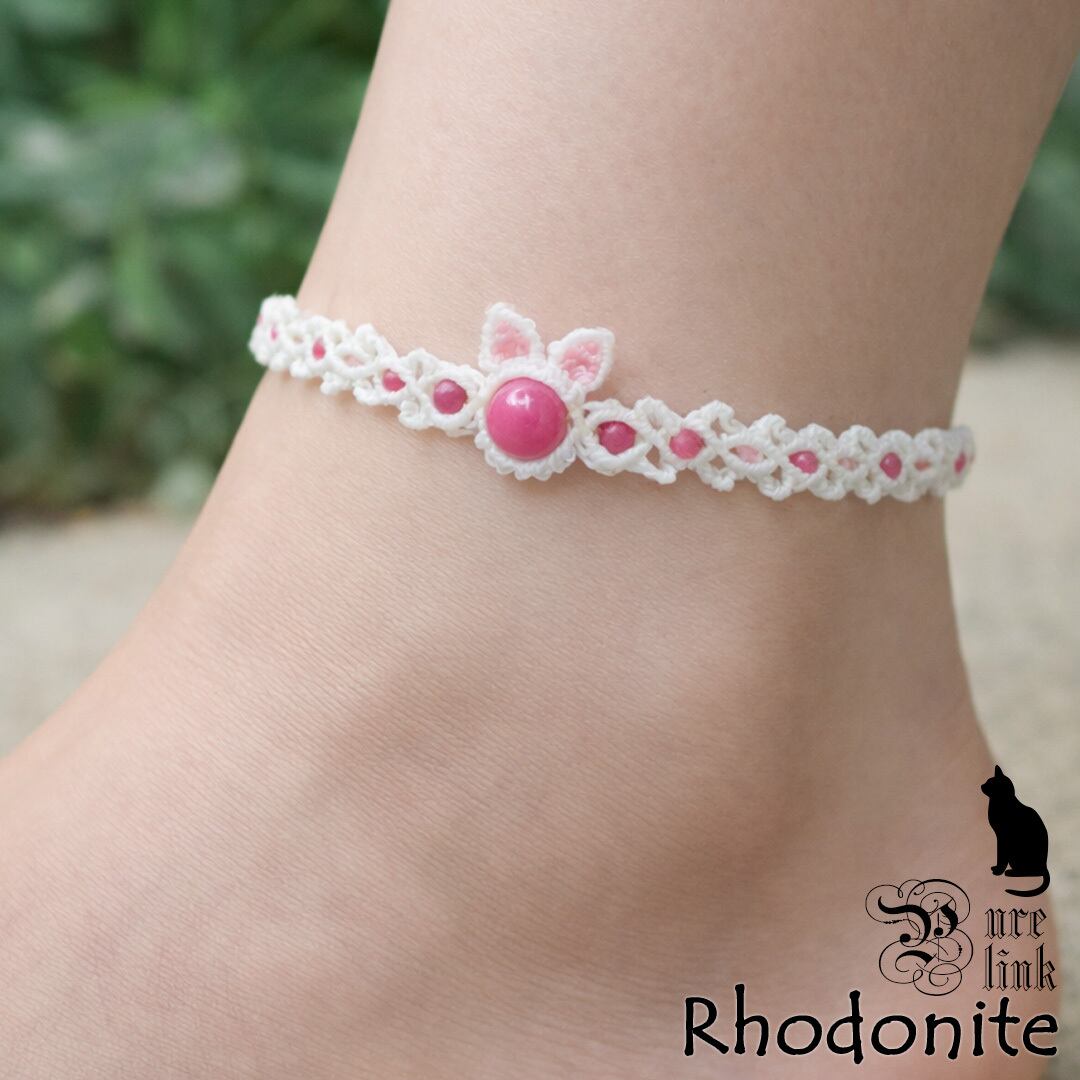 猫耳/薔薇の魔石『ロードナイト』マクラメ編みアンクレット