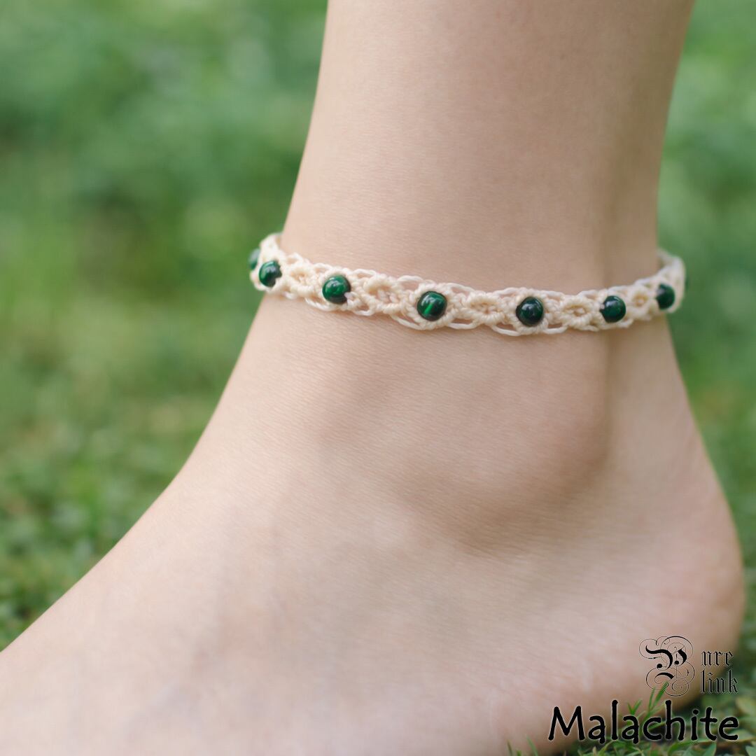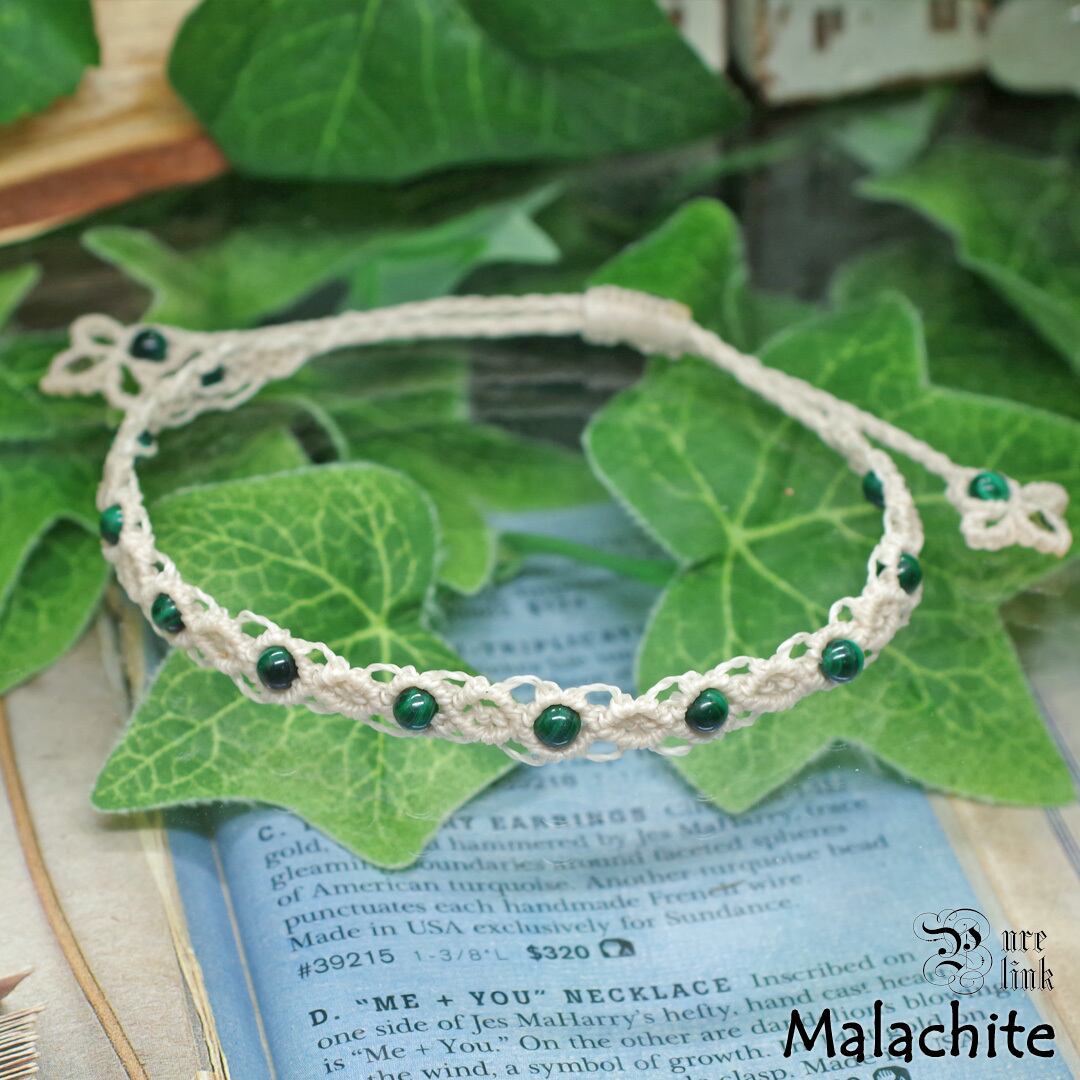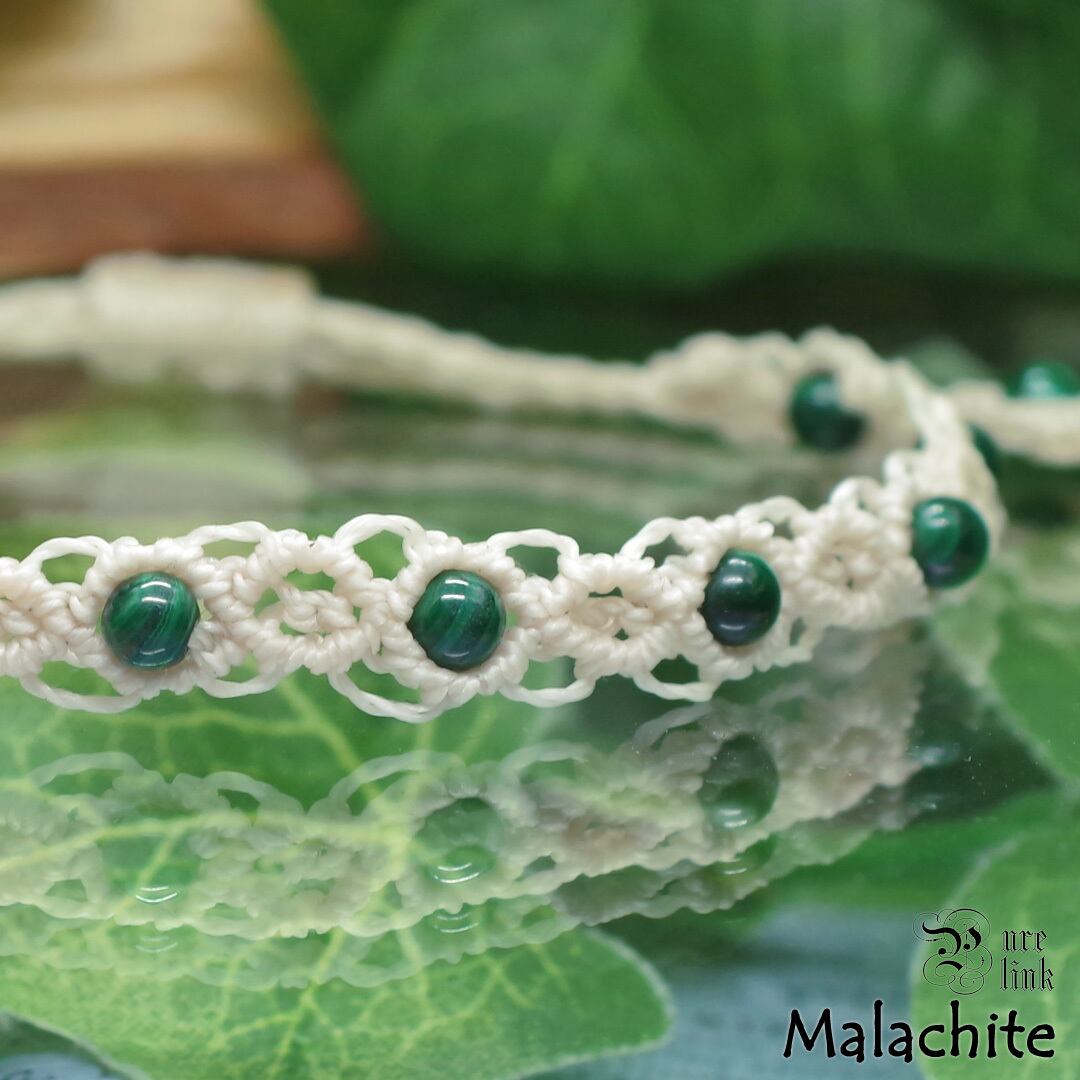 神と同じ名を持つ魔石・孔雀石『マラカイト』マクラメ編みアンクレット
