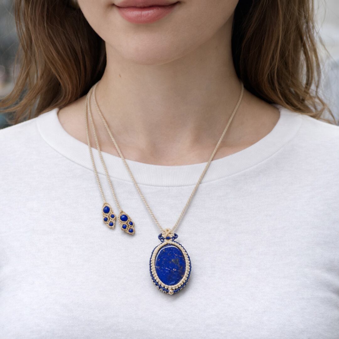『ラピスラズリ』女神イシュタルの護符魔石マクラメ編みトップネックレス