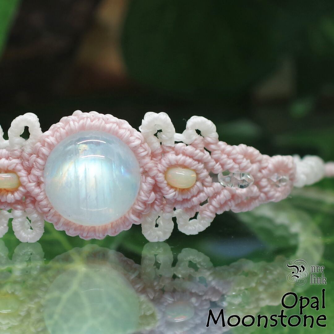 『レインボームーンストーン』『プレシャスオパール』マクラメ編ブレスレット