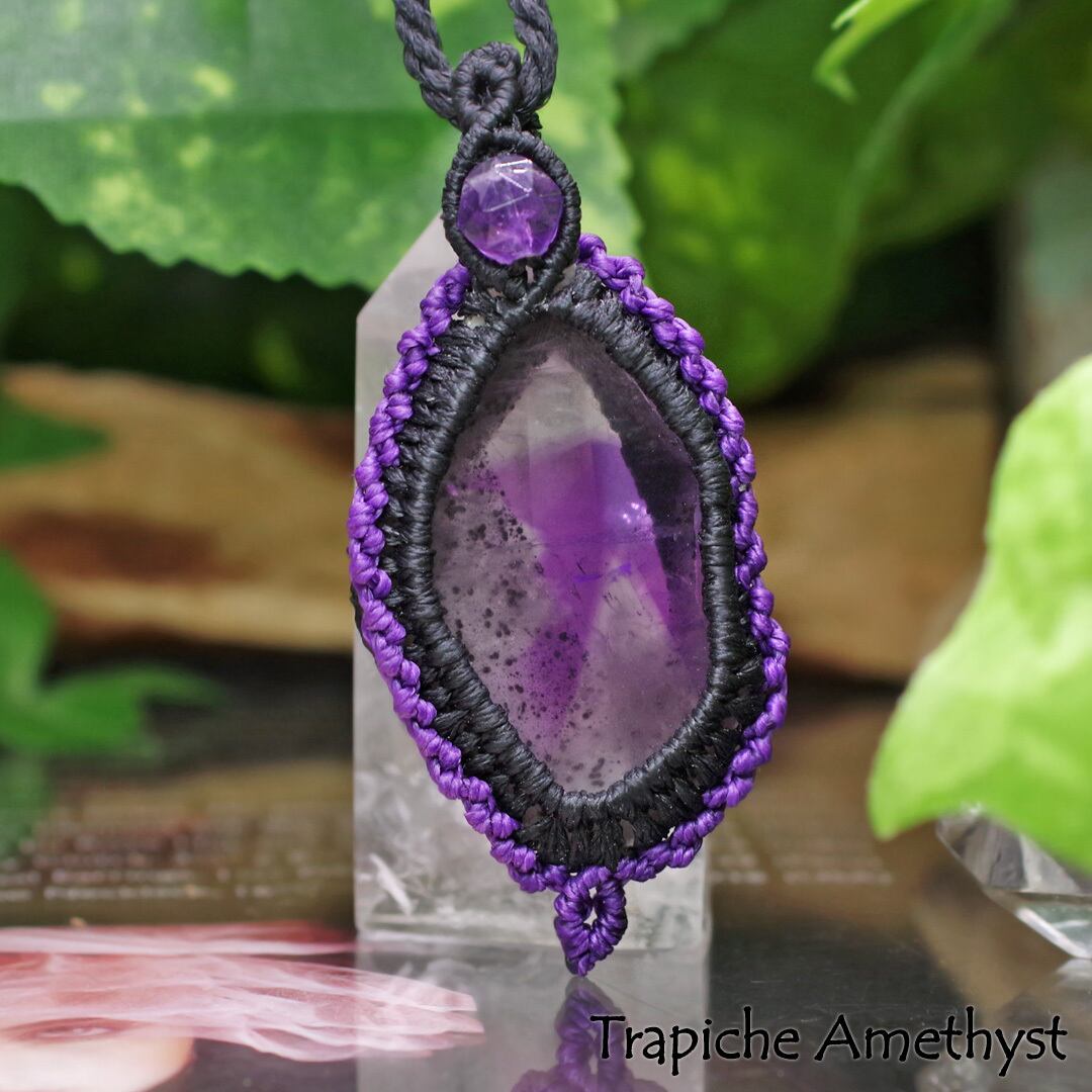 レア★聖なる紫石『トラピッチェアメジスト』マクラメ編トップネックレス