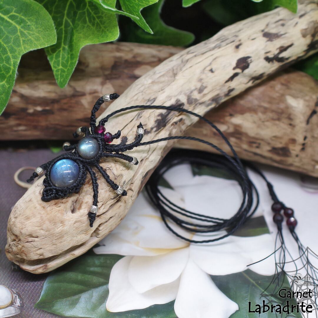 月と太陽を象徴する魔石『ラブラドライト』蜘蛛マクラメ編トップネックレス3
