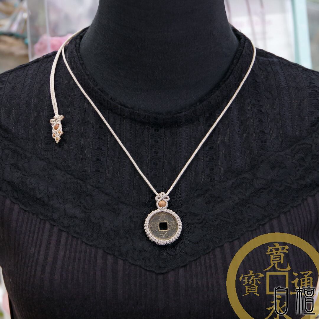 古銭・寛永通宝(十一波 4文銭)と『白檀・サンダルウッド』マクラメ編みネックレス