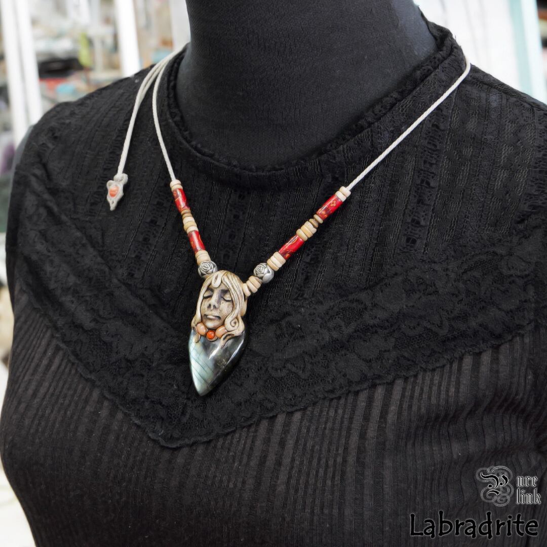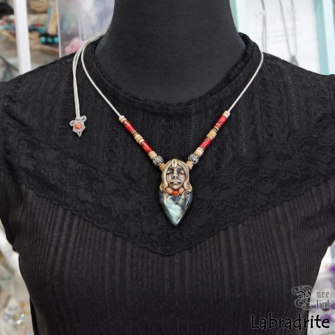 月と太陽を象徴する魔石『ラブラドライト』女神クレイアートマクラメ編トップネックレス2