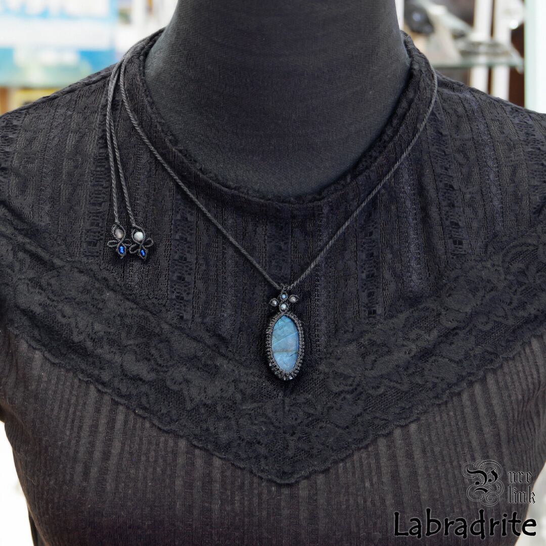そんな、幻想的な輝きを放つ『ラブラドライト』を使用し、より石達の力が発揮できるように願いを込め丁寧に編んで作成した、当ショップオリジナルのハンドメイドマクラメ編ネックレスです。