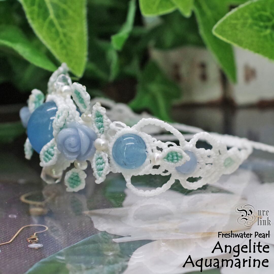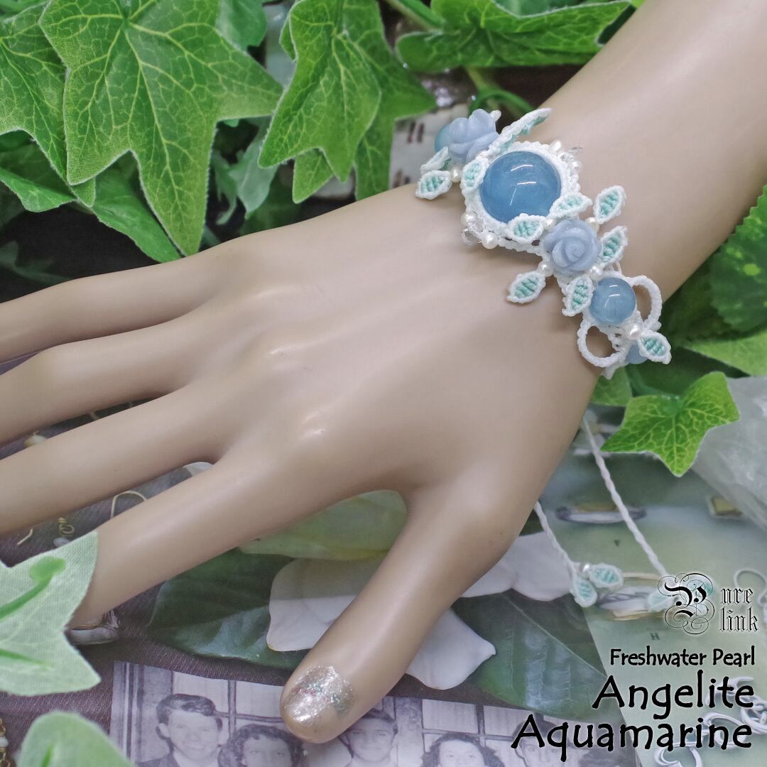 海を象徴する魔石『アクアマリン』青薔薇『エンジェライト』生命の樹マクラメ編ブレスレット2