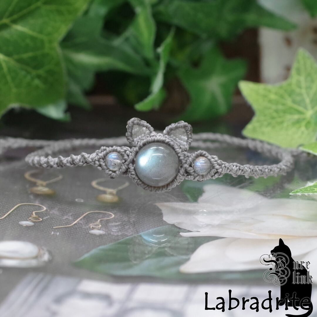 猫耳!?月と太陽を象徴する魔石『ラブラドライト』マクラメ編みネコブレスレット