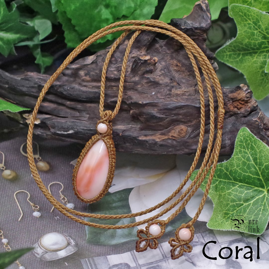 極楽浄土を飾る七宝・ピンク珊瑚(深海珊瑚)マクラメ編みネックレス5