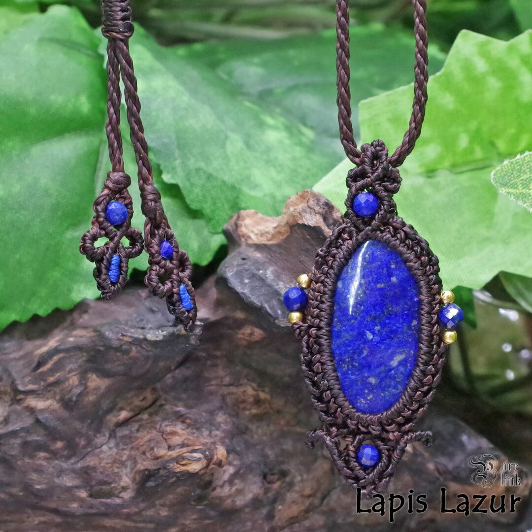 そんな、『ラピスラズリ』を使用し、より石達の力が発揮できるように願いを込め丁寧に編んで作成した、当ショップオリジナルのハンドメイドマクラメ編ネックレスです。