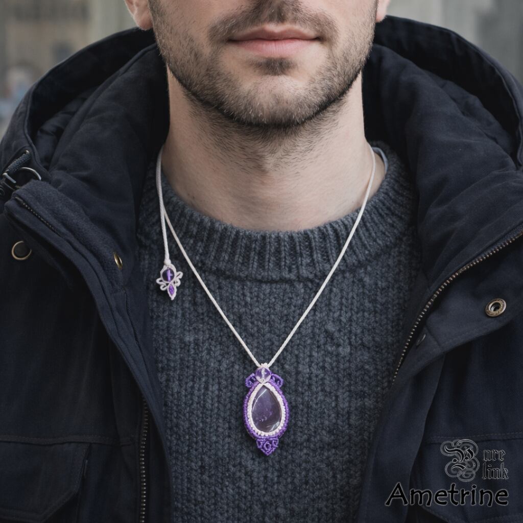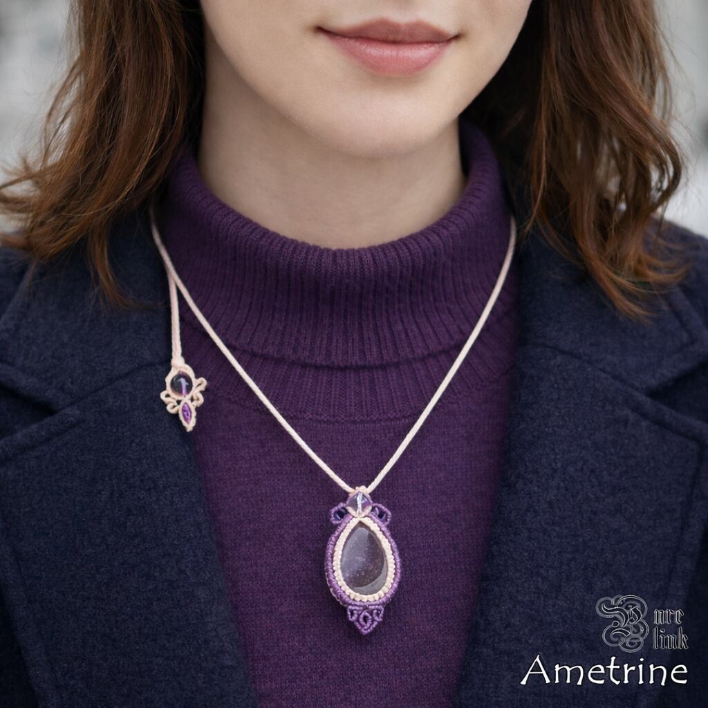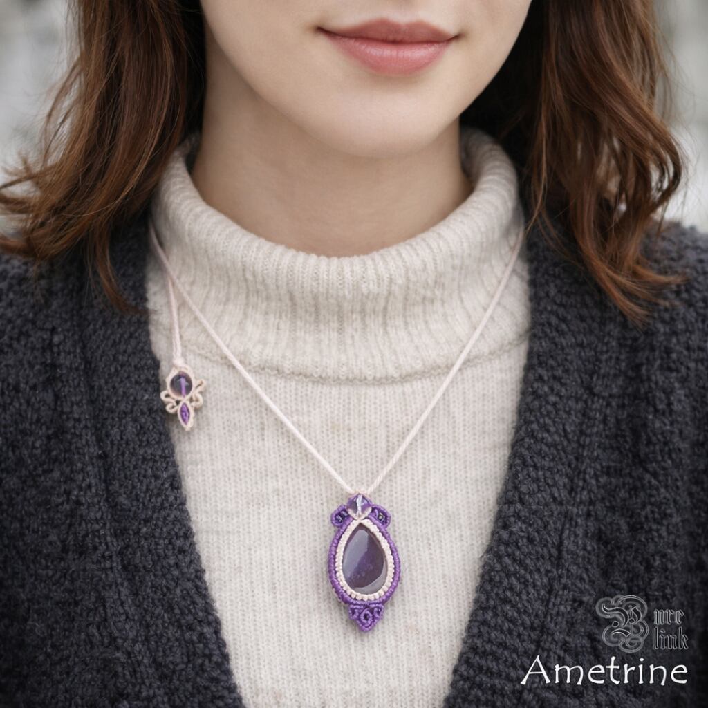 紫黄色の癒しの魔石『アメトリン』マクラメ編トップネックレス5
