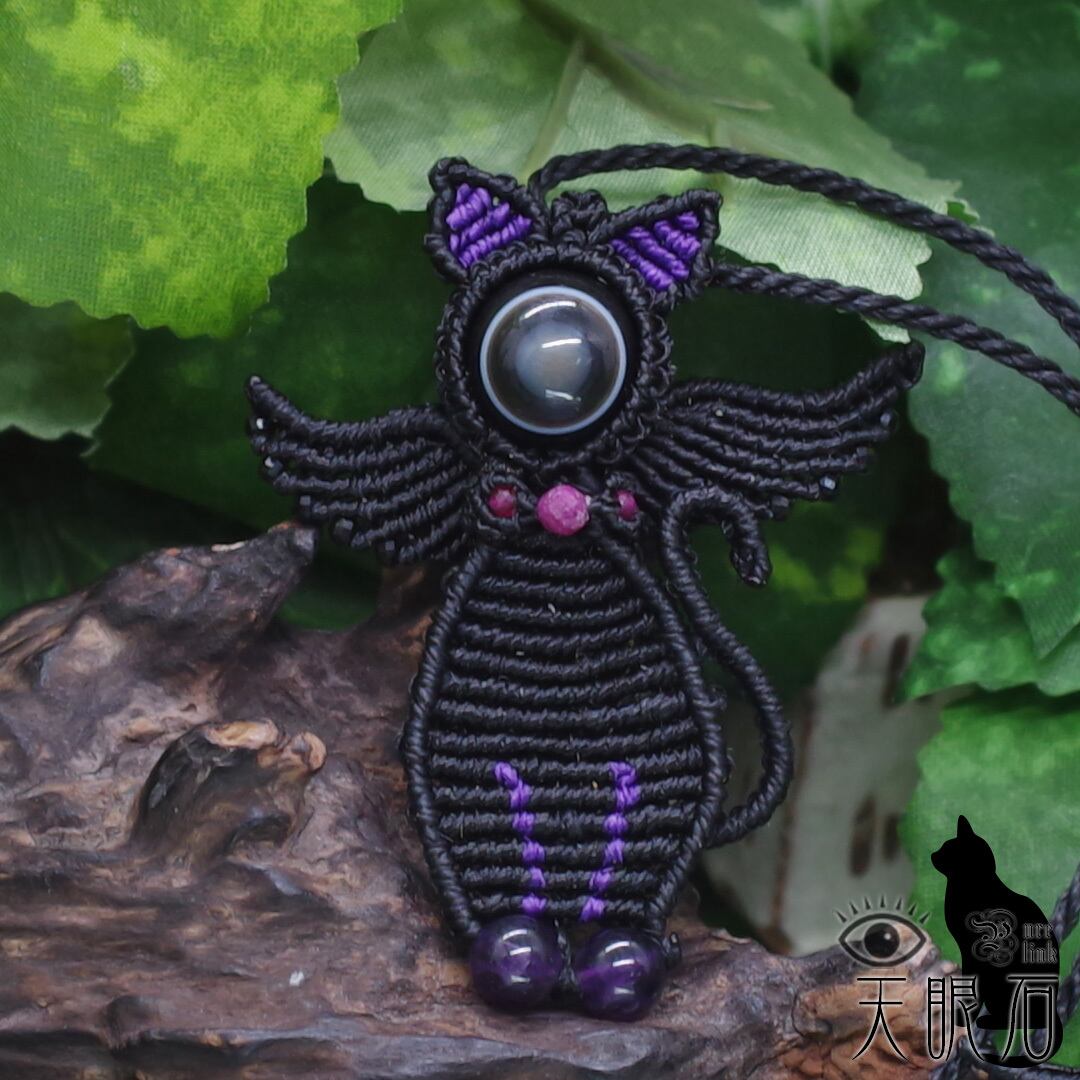 猫天使!?お顔が『天眼石』な!!猫マクラメ編みネックレス