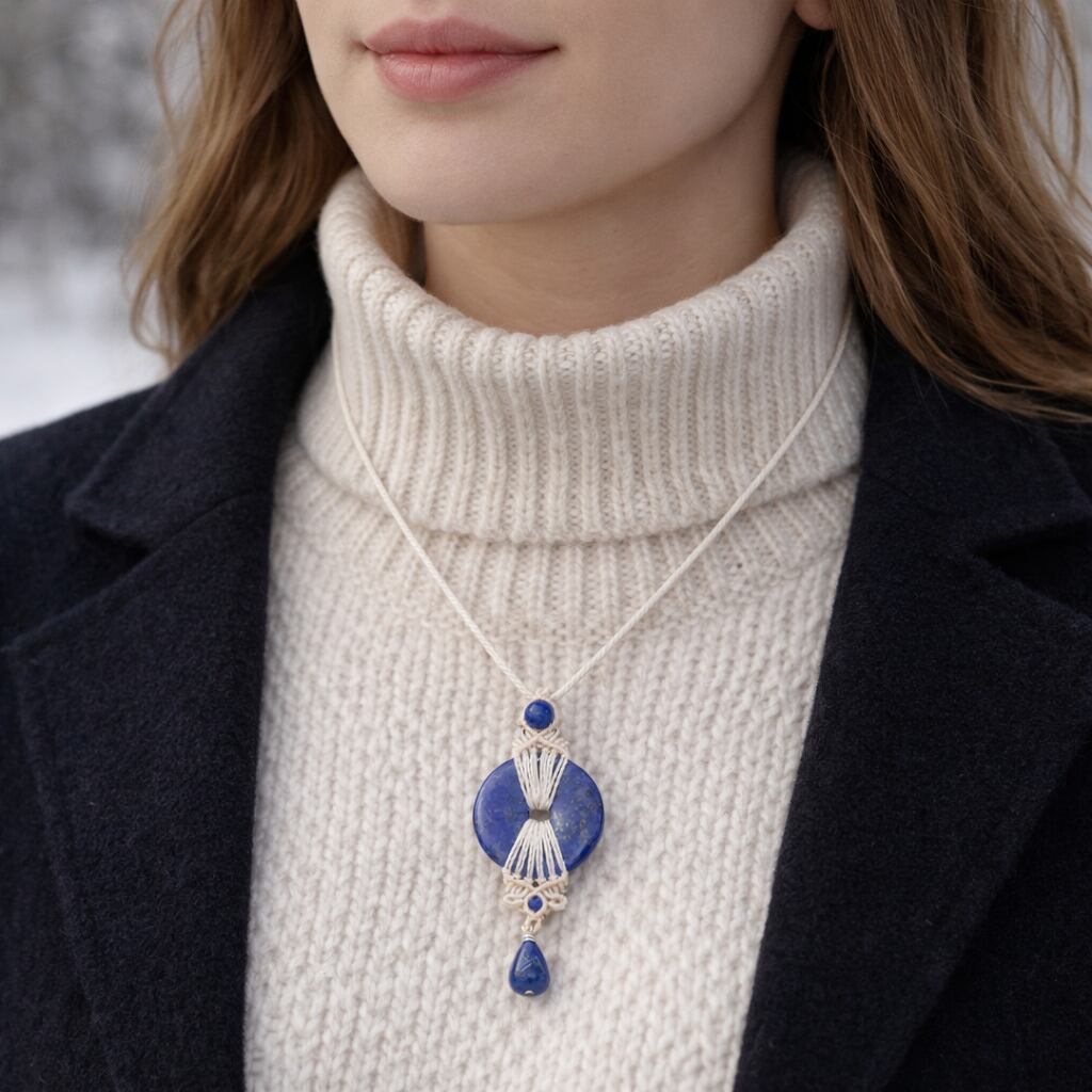女神イシュタルの護符魔石『ラピスラズリ』璧・ピーディスクマクラメ編みネックレス
