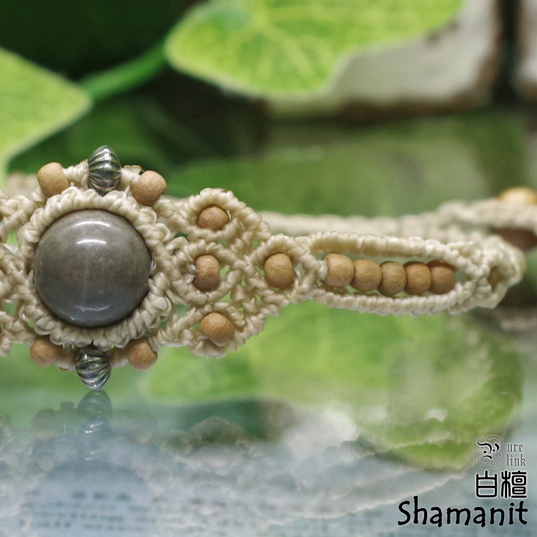 そんな、強い力を秘める『シャーマナイト』と癒し清める効果あるとされ瞑想や宗教的儀式にもよく用いらる香木『白檀』やカレンシルバーなど『シルバー925』ビーズも使用し頼もしいお守りにもなるように、願いを込め丁寧に編んで作成した、サイズ調整も可能な当ショップオリジナルのハンドメイドマクラメ編ブレスレットです。